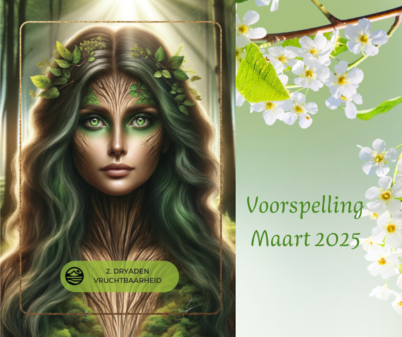 Maart nodigt je uit om bewust te zijn van de natuurlijke cycli waarin je leeft. De seizoenen veranderen, en met hen verandert ook jouw energie. Dit is een mooie tijd om nieuwe gewoonten te zaaien of oude patronen los te laten die je niet langer dienen. De Dryaden herinneren je eraan dat het niet gaat om snelle resultaten, maar om duurzame groei die in harmonie is met de natuurlijke stroom van het leven.